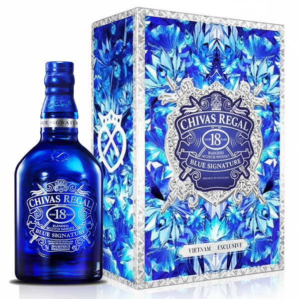 Chivas Regal 18 Blue Signature được phối trộn từ hơn 20 loại single malt và grain whisky được ủ ít nhất 18 năm trong thùng gỗ sồi. So với phiên bản Gold Signature cổ điển, dòng Blue Signature mang sắc thái hương vị phong phú hơn, với nốt cacao đắng nhẹ, cam mật, kẹo bơ cứng, vani và khói gỗ thanh lịch. Hậu vị kéo dài, mượt mà, để lại cảm giác ấm áp và tinh tế.