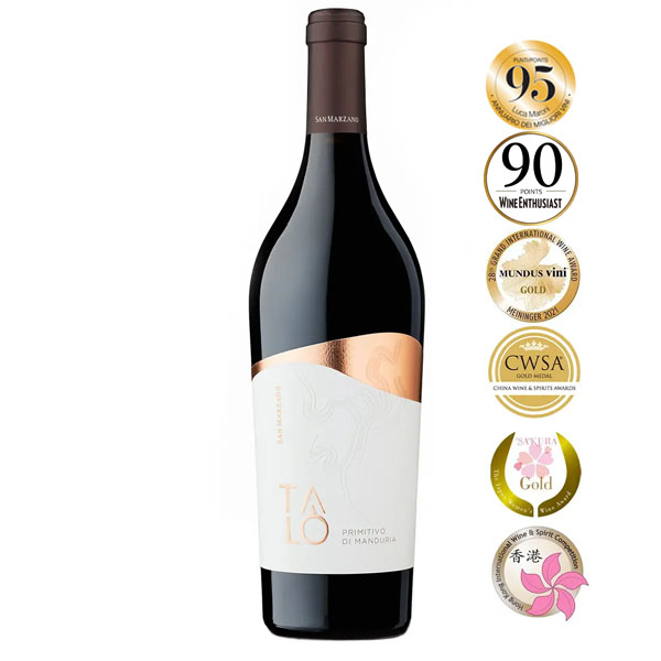 Rượu vang Talo Primitivo di Manduria là một trong những biểu tượng đặc sắc của Cantine San Marzano – hợp tác xã rượu vang nổi tiếng nằm tại trung tâm vùng Primitivo di Manduria DOP, Puglia, miền Nam nước Ý. Được thành lập từ năm 1962 bởi 19 nhà trồng nho địa phương, San Marzano là cái tên tiên phong trong việc nâng tầm dòng nho Primitivo – giống nho đỏ đặc trưng của vùng đất Địa Trung Hải này.